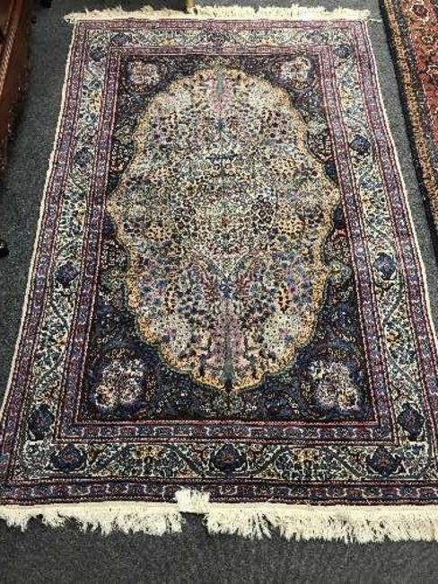 A fringed Persian Kirman carpet with tree of life design, 139 cm x 214 cm