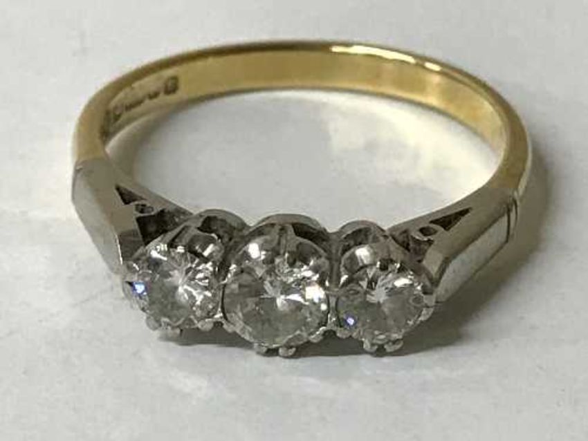 An 18ct gold three stone diamond ring