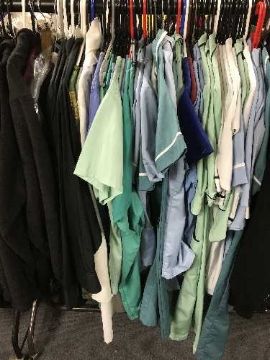 A part rail of nurses uniforms, nurses outfits, shirts etc