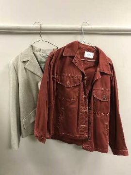 A full rail of lady's jackets, leather jackets, lady's vintage suits