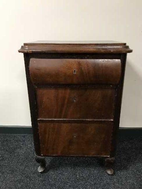 A mahogany three drawer chest