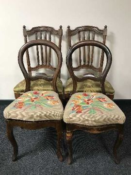 A pair of balloon back chairs and a pair of mahogany chairs