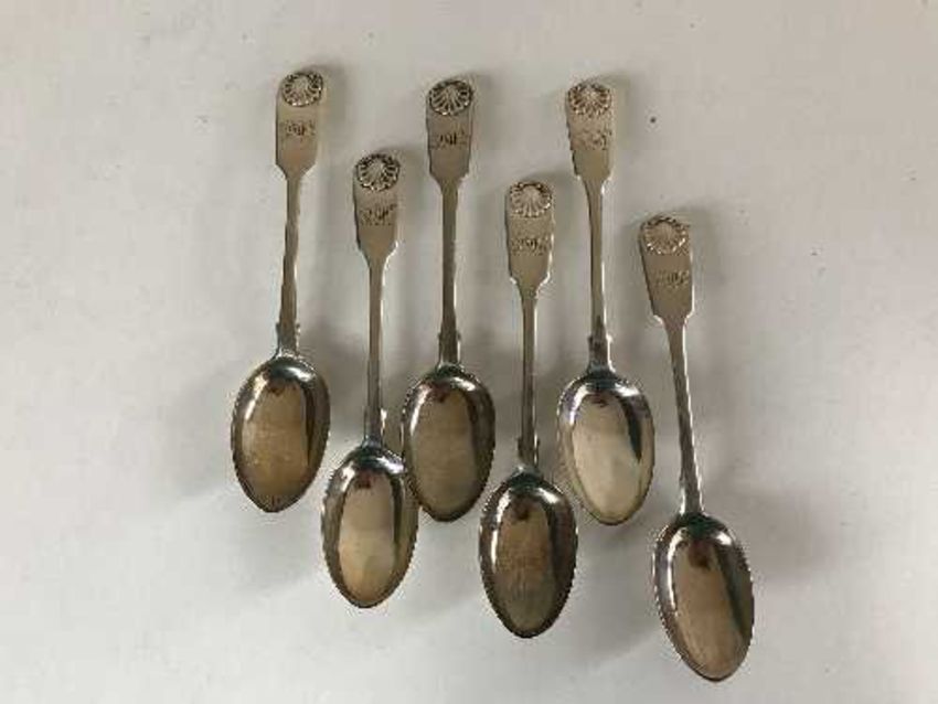 A set of six sterling silver teaspoons with initials
