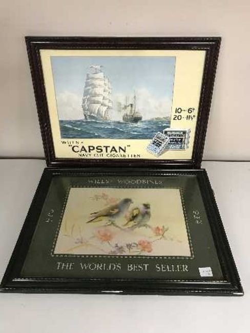 Two mid 20th century cigarette advertisements - Capstone Navy Cut and Wills Woodbines