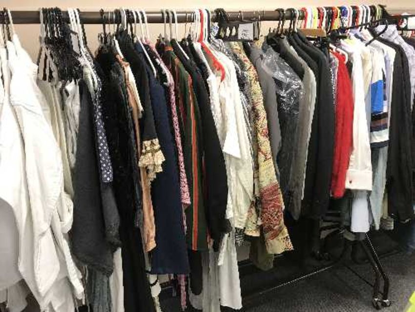 A full rail of various clothing, shirts, jackets, Karate suits etc