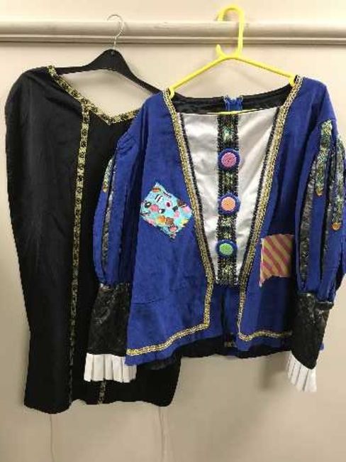 A full rail of theatre waistcoats, theatrical tunics and costumes