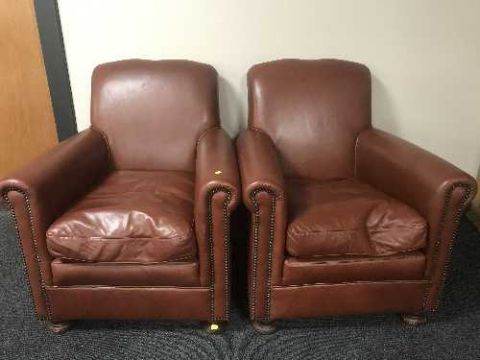 A pair of leather club armchairs