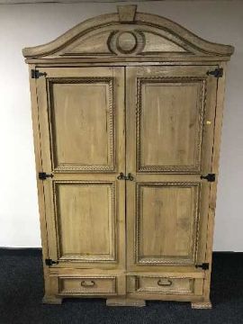 A pine double door wardrobe fitted two drawers