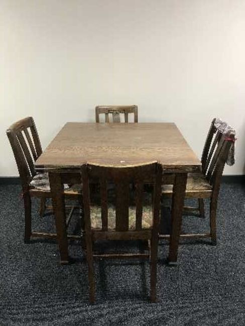 AN oak extending table and four chairs