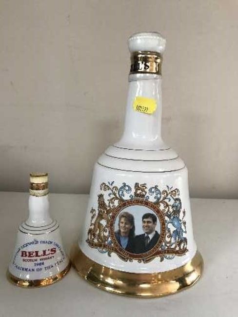 A Wade Bell's Whisky commemorative decanter, Marriage of Prince Andrew & Sarah Ferguson 1986, 75cl, sealed. Together with a miniature Wade Bell's Scotch Whisky Decanter 1986, Chairman of the Year.