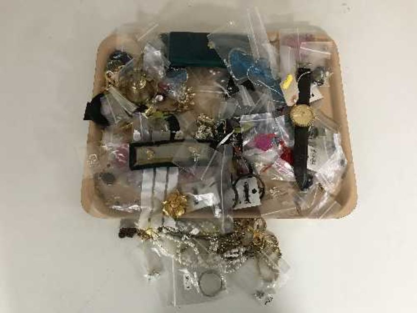 A tray of costume jewellery, necklaces, Gent's VIP watch etc