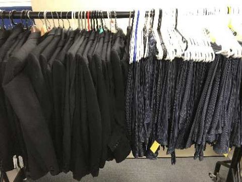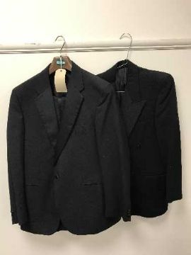 A full rail of gent's dinner suits and striped trousers