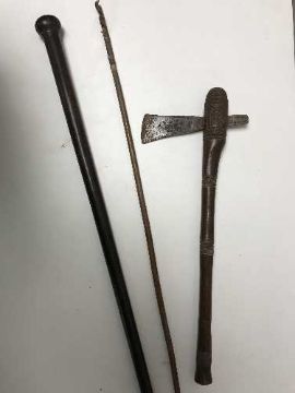 A knobkerry together with a tribal axe and arrow shaft (3)
