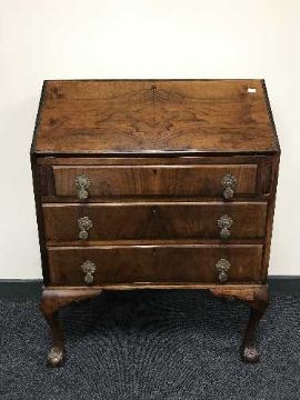 A mahogany bureau on claw and ball feet