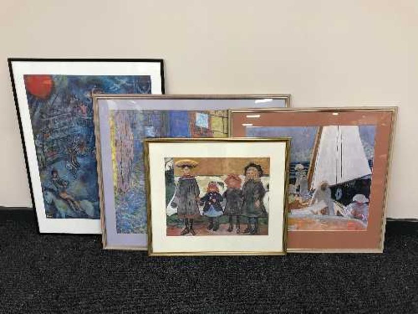 A framed Marc Chagall print - Circus Performers together with three impressionist study prints