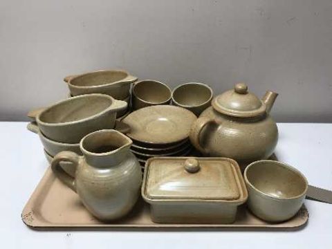 A twenty-one piece stoneware tea service with soup bowls and butter dish