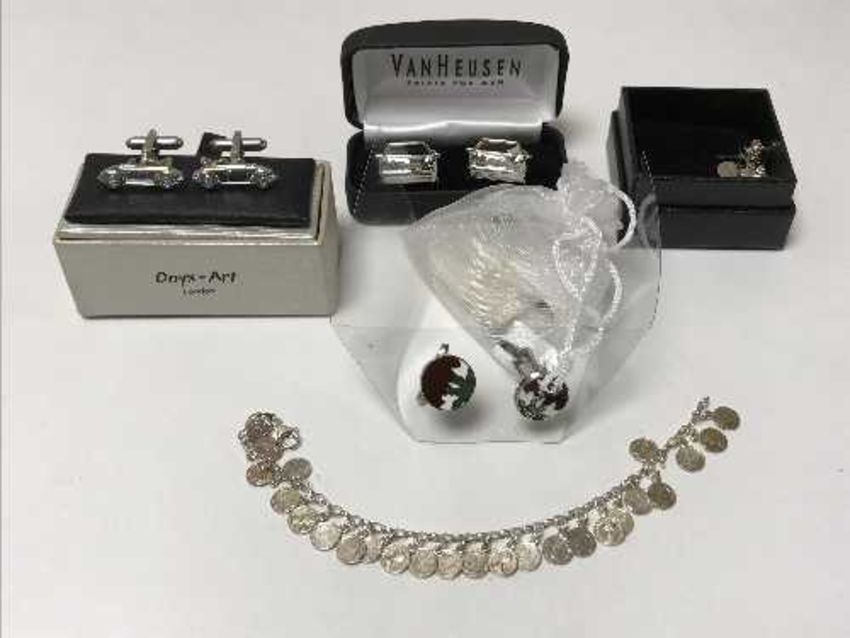 A silver coin bracelet, pendant and a small quantity of costume jewellery