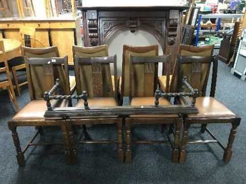 A set of four oak dining chairs and oak fire curb