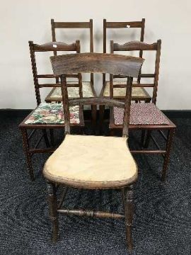 Two pairs of Victorian inlaid mahogany bedroom chairs together with one other (5)
