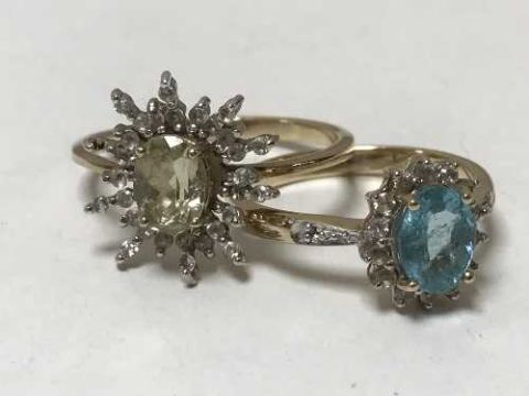 Two 9ct gold dress rings set with gemstones, 4.8g. (2)