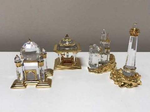 Four Swarovski crystal ornaments - Taj Mahal, Chinese Pagado etc