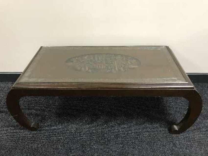 A carved oriental hardwood coffee table