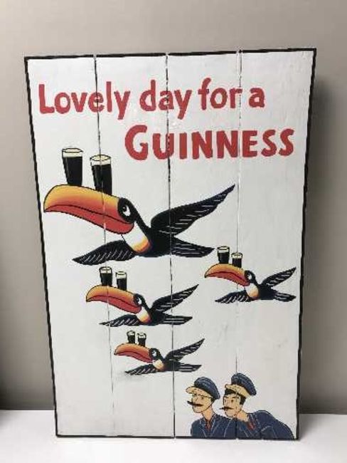 A hand painted panel - A lovely day for a Guinness, on pine board
