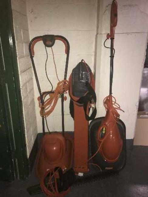 Two Flymo mowers, garden vac and Black & Decker hedge trimmer