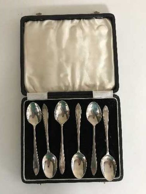 A set of six cased silver teaspoons, Birmingham marks, 1937