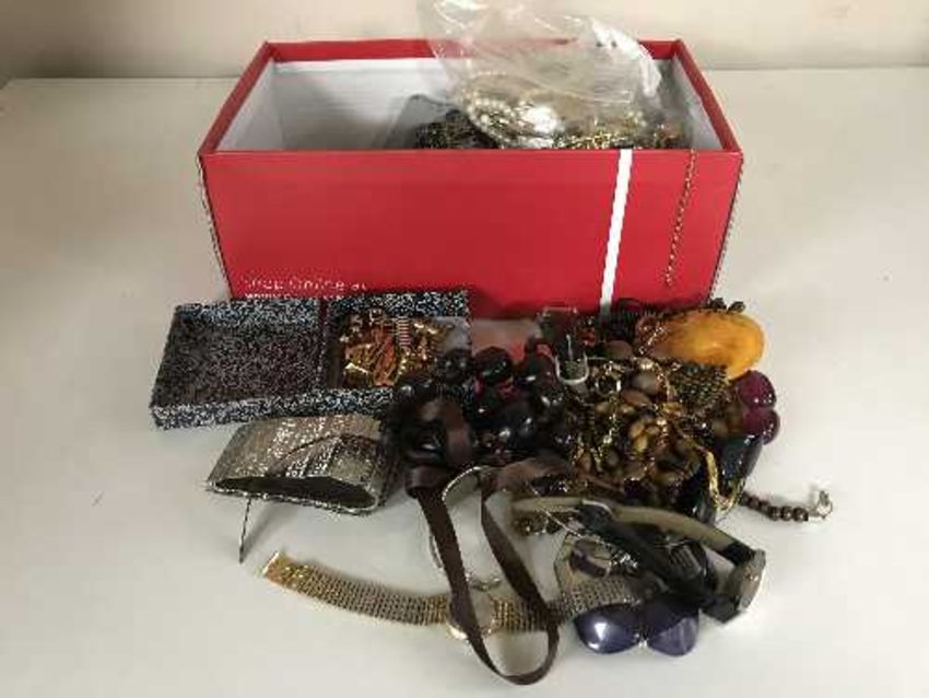 A box of costume jewellery and a quantity of lady's watches