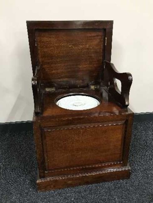 A Victorian mahogany commode with a ceramic liner
