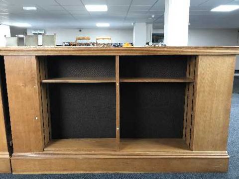 An early 20th century oak double sided library bookcase