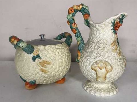A Clarice Cliff Newport pottery jug and twin handled pot