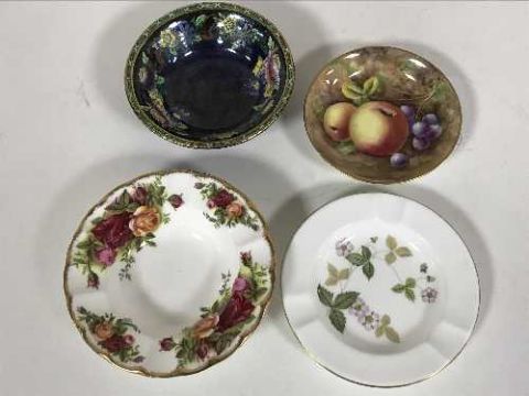 A Royal Worcester small dish painted by B. Cox, together with a Maling dish Wedgwood ashtray and a Royal Albert ashtray (4)