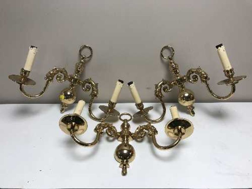 Two boxes of eight decorative twin arm wall lights