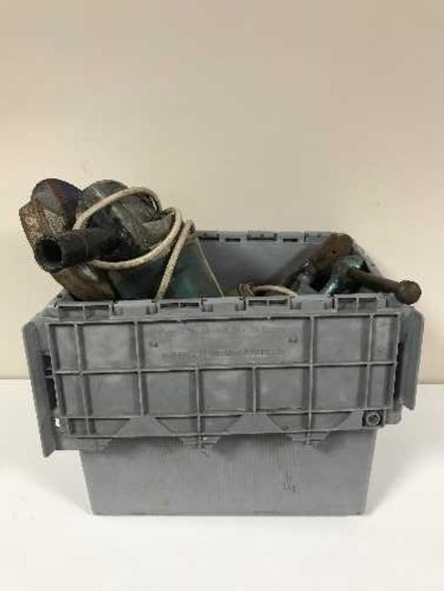 Two boxes of tools and hardware