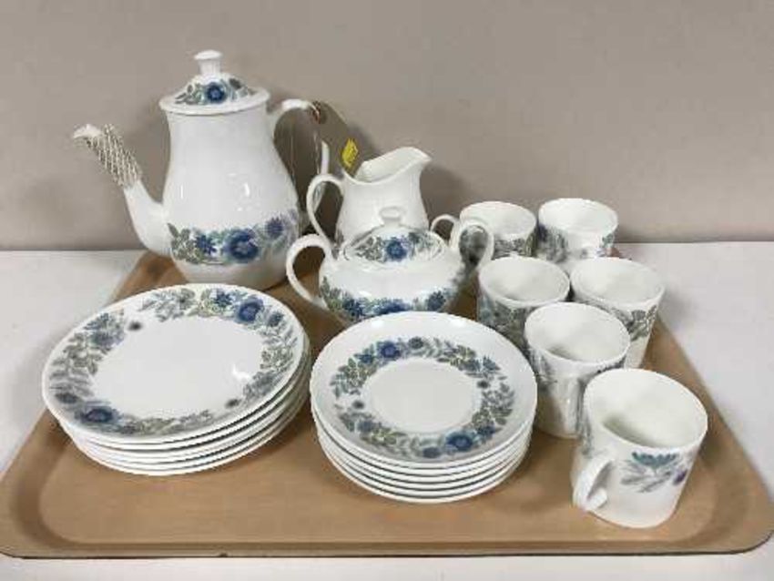 A tray of twenty one pieces of Wedgwood Clemantine tea set