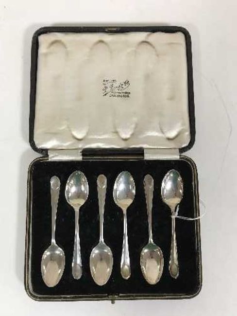 A cased set of six silver teaspoons