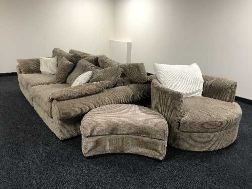 A three piece lounge suite and a footstool