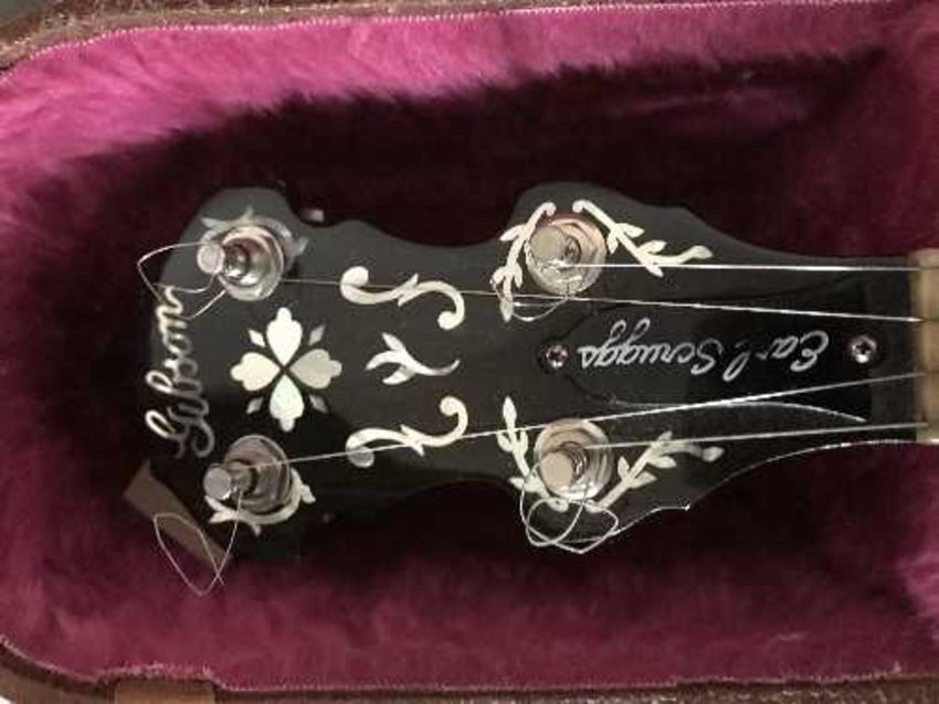 A 1988 Gibson "Earl Scruggs" Mastertone five-string banjo, serial number 1375, in fitted Gibson hard-shelled case, with a tooled leather strap, with spare strings, etc.