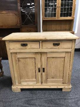 A stripped pine cupboard fitted two drawers