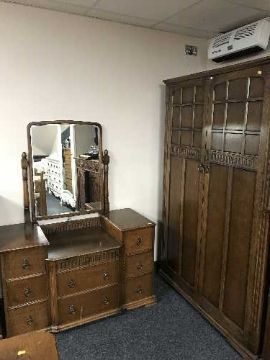 An oak double door wardrobe and dressing chest