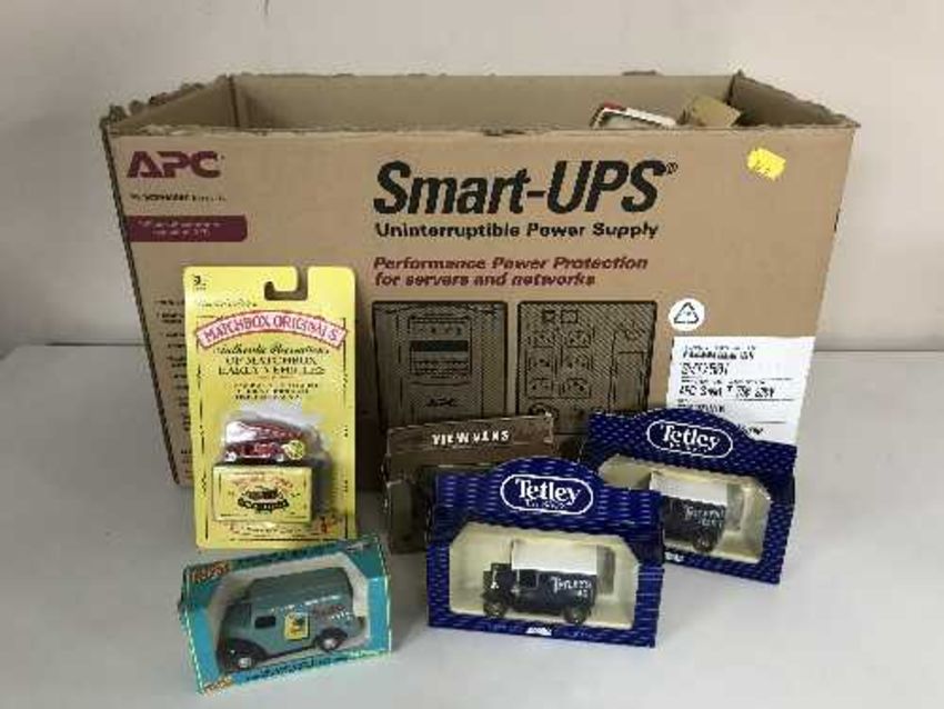 A box of boxed die cast vehicles