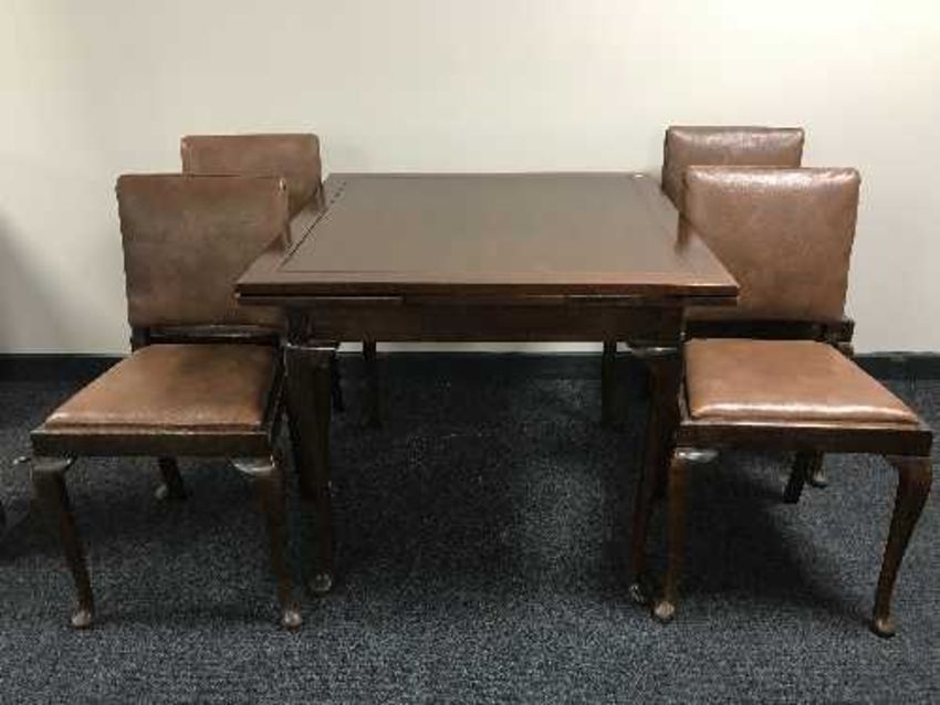 A mahogany dining room suite comprising of pull-out dining table, 4 chairs and sideboard
