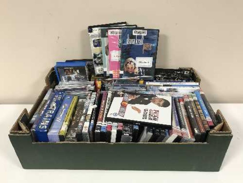 Three boxes of DVDs, football annuals, Shoot out cards etc