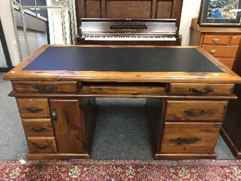 A plantation pine twin pedestal writing desk