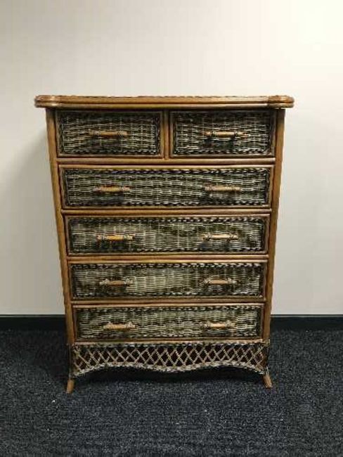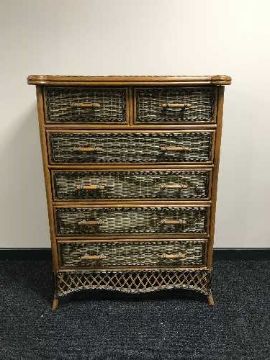 A bamboo and wicker six drawer chest