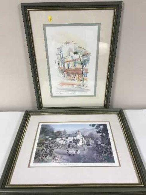 Five assorted framed pictures inc. Walter Holmes print of the Tyne Bridge, Heaton Cooper print - landscape scene etc