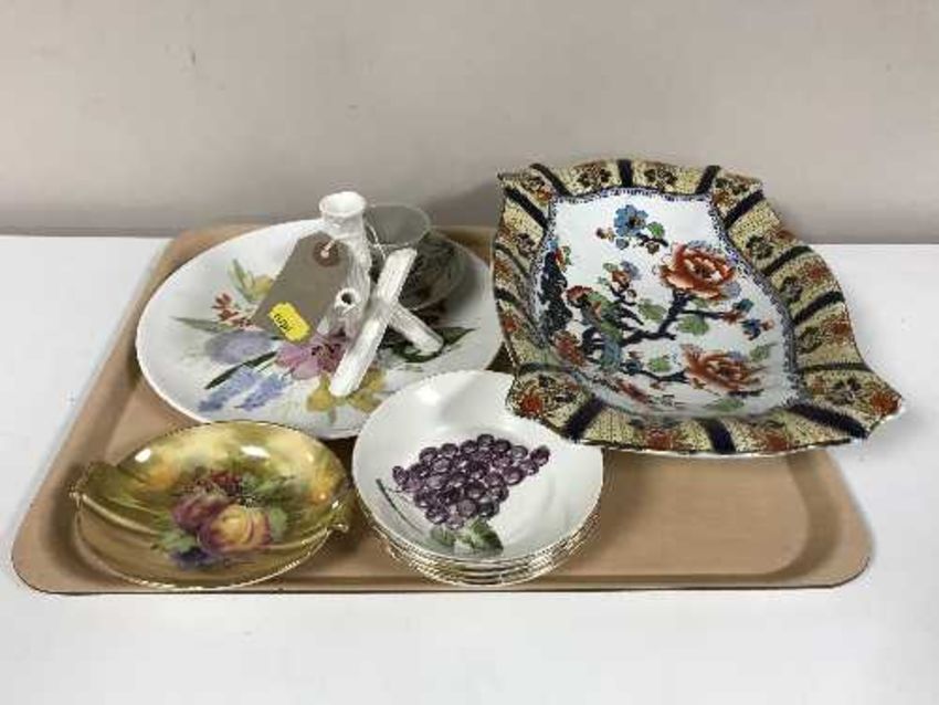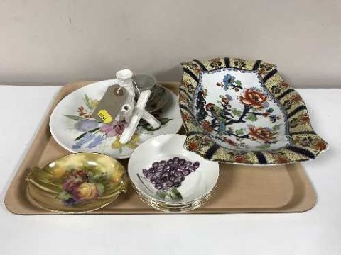 A tray of Lossol ware bowl, 20th century Chinese cup and saucer, hand painted Royal Doulton plate, hand painted Wedgwood dishes etc