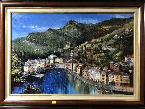 Dallas K Taylor : Continental harbour scene, oil on board, signed, together with a photograph depicting the scene to which the painting was taken from, both parts framed. (2)